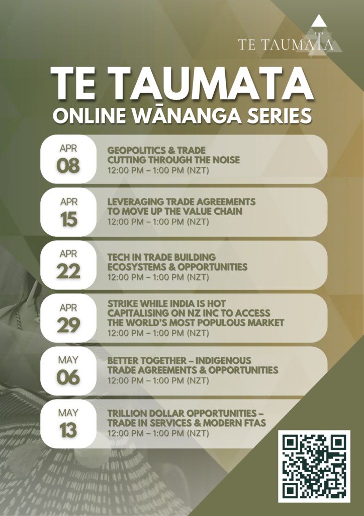 A six-part lunchtime webinar series supporting Pakihi Māori with insights and kōrero on key trade and economic kaupapa.